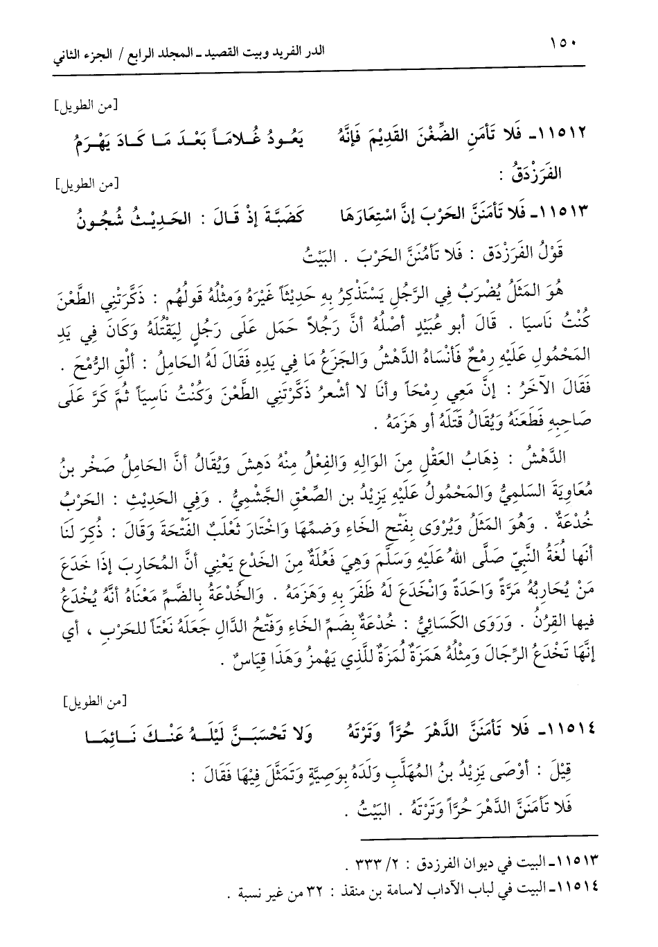 قَوْلُ الفَرَزْدَق: فَلا تآمُنَنَّ الحَرْبَ. البَيْتُ