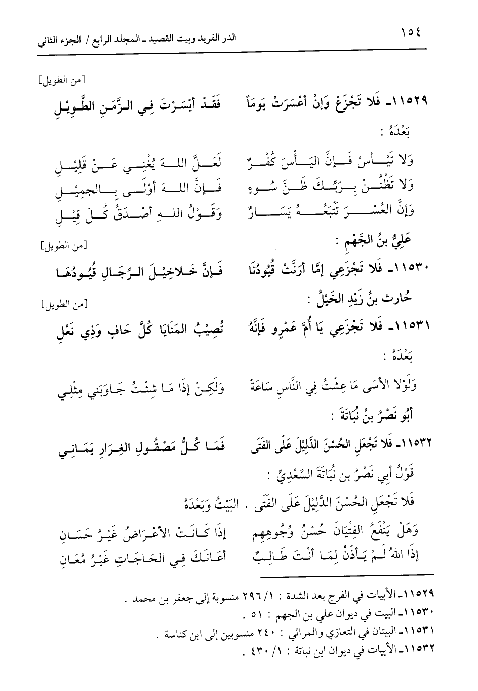 11529 - فَلا تَجْزَعْ وَإِنْ أعْسَرَتْ يَومًا ... فَقَدْ أيْسَرْتَ فِي الزَّمَنِ الطَّوِيْلِ