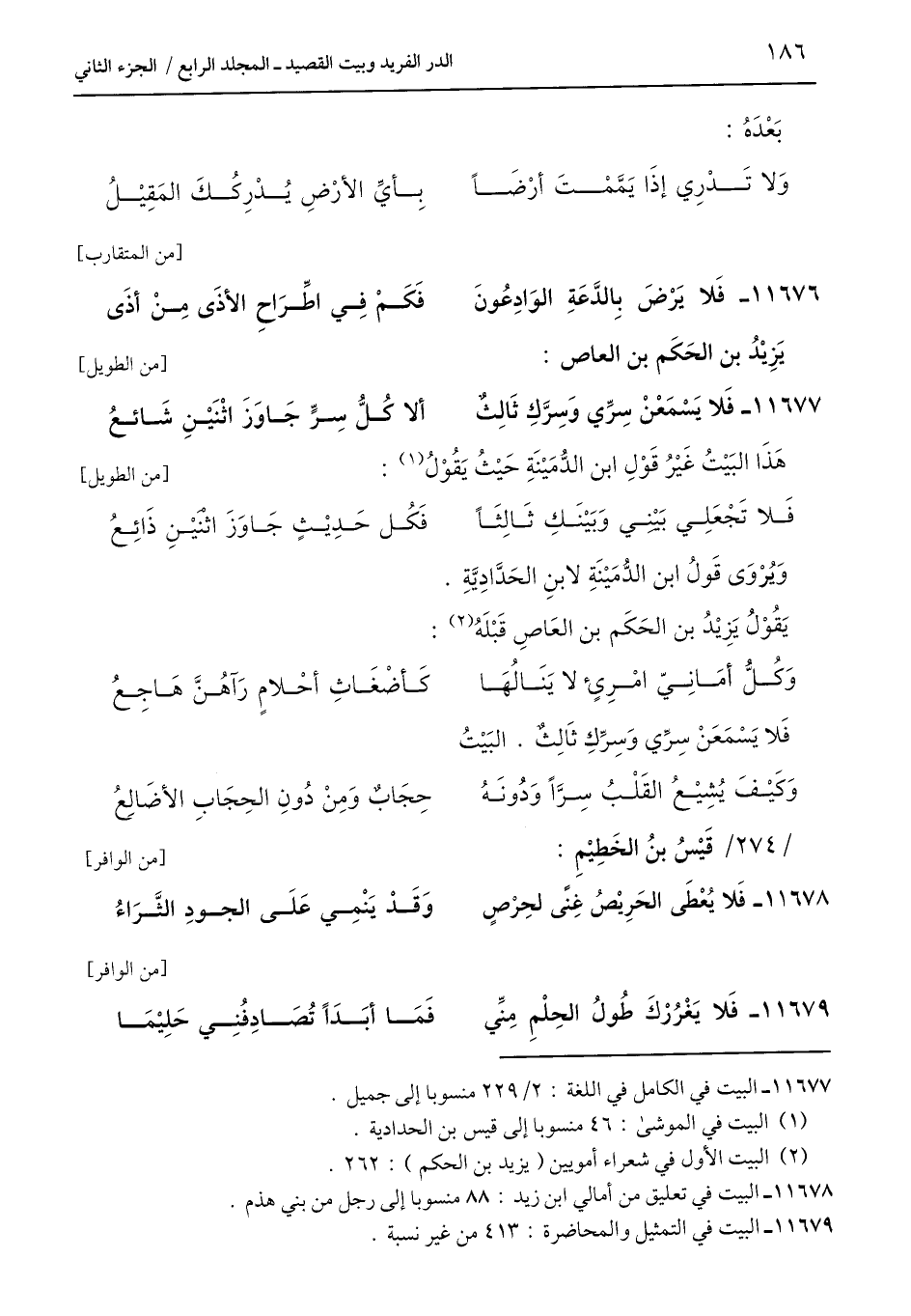 (¬2) البيت الأول في شعراء أمويين (يزيد بن الحكم): 262.