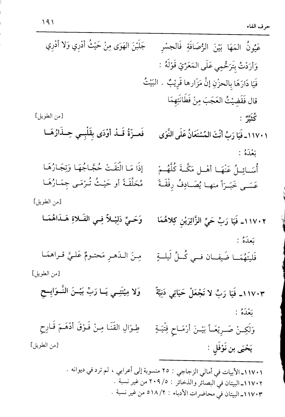 11701 - فَيَا رَبِّ أنْتَ المُسْتَعَانُ عَلَى النَّوَى ... فَعزّةُ قَدْ أوْدَى بِقَلْبِي حِذَارُهَا
