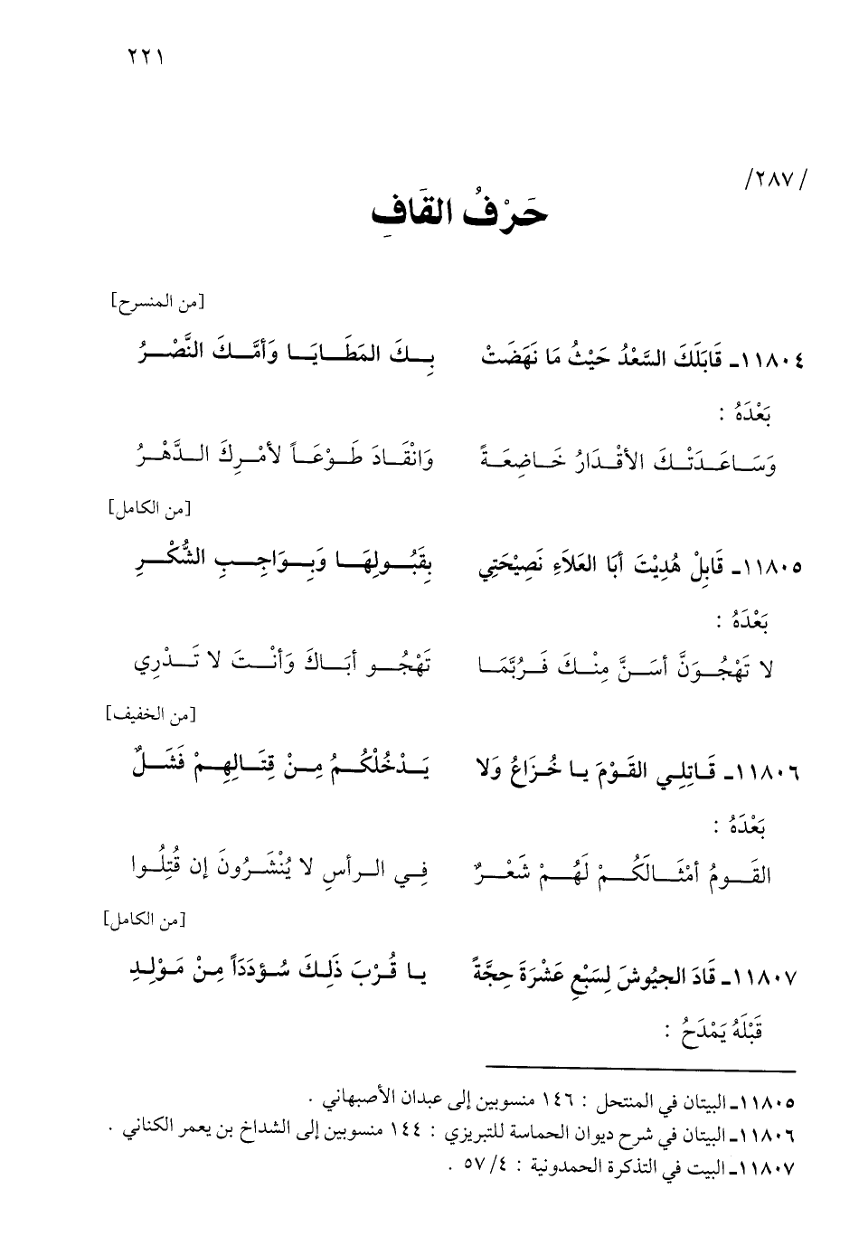 11806 - البيتان في شرح ديوان الحماسة للتبريزي: 144 منسوبين إلى الشداخ بن يعمر الكناني.