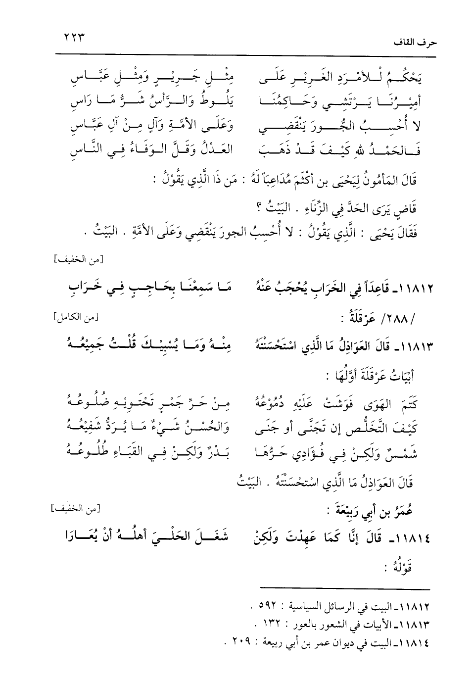 11813 - قَالَ العَوَاذِلُ مَا الَّذِي اسْتَحْسَنْتَهُ ... مِنْهُ وَمَا يُسْبِيْكَ قُلْتُ جَمِيْعُهُ