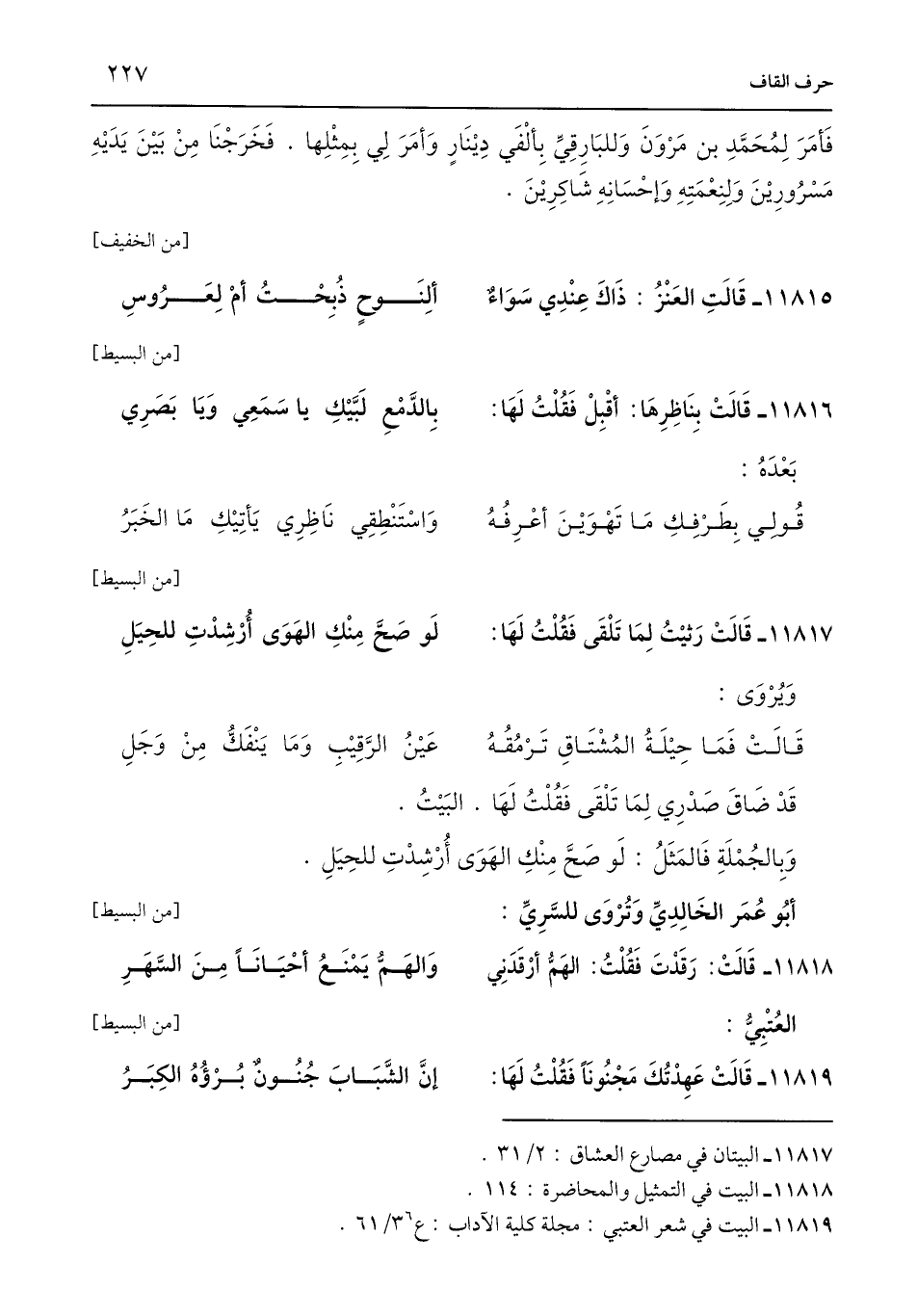 11819 - البيت في شعر العتبي: مجلة كلية الآداب: ع 6، 3/ 61.