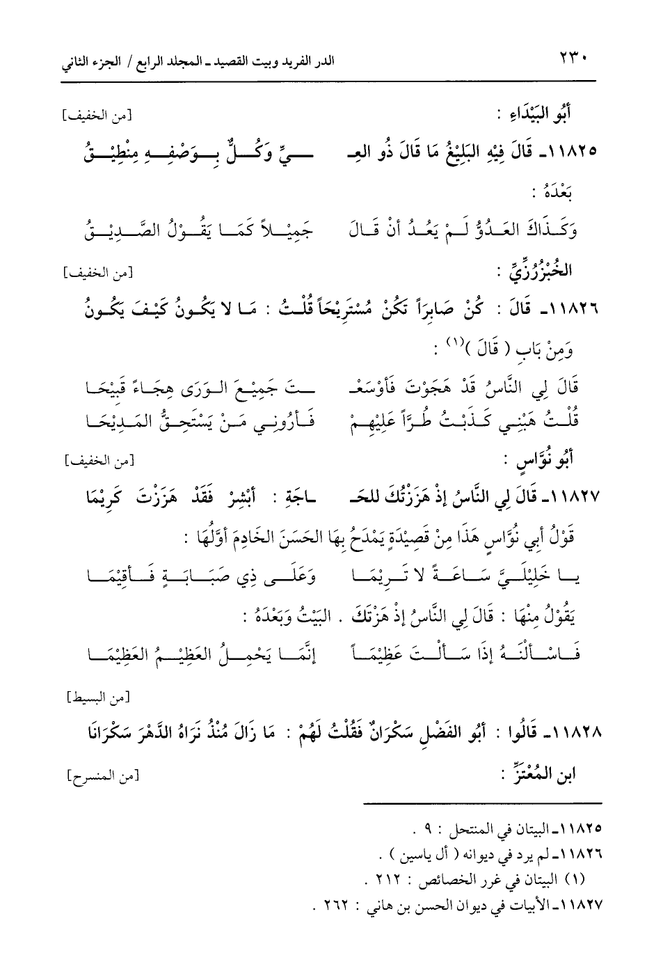 11827 - الأبيات في ديوان الحسن بن هاني: 262.