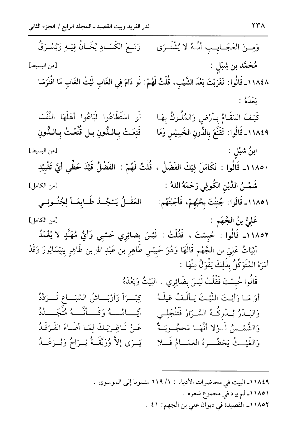 11852 - القصيدة في ديوان علي بن الجهم: 41.