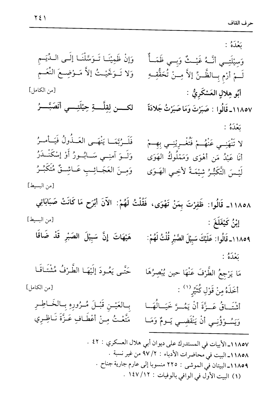 11857 - الأبيات في المستدرك على ديوان أبي هلال العسكري: 42.