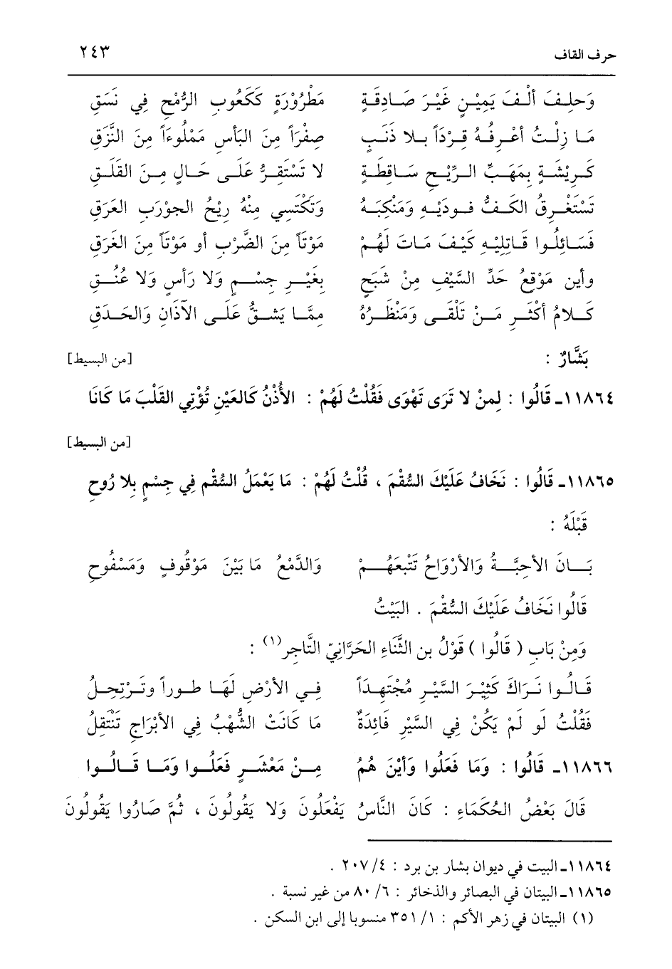 وَمِنْ بَابِ (قَالُوا) قَوْلُ بن الثَّنَاءِ الحَرَّانِيّ التَّاجِر (¬1):