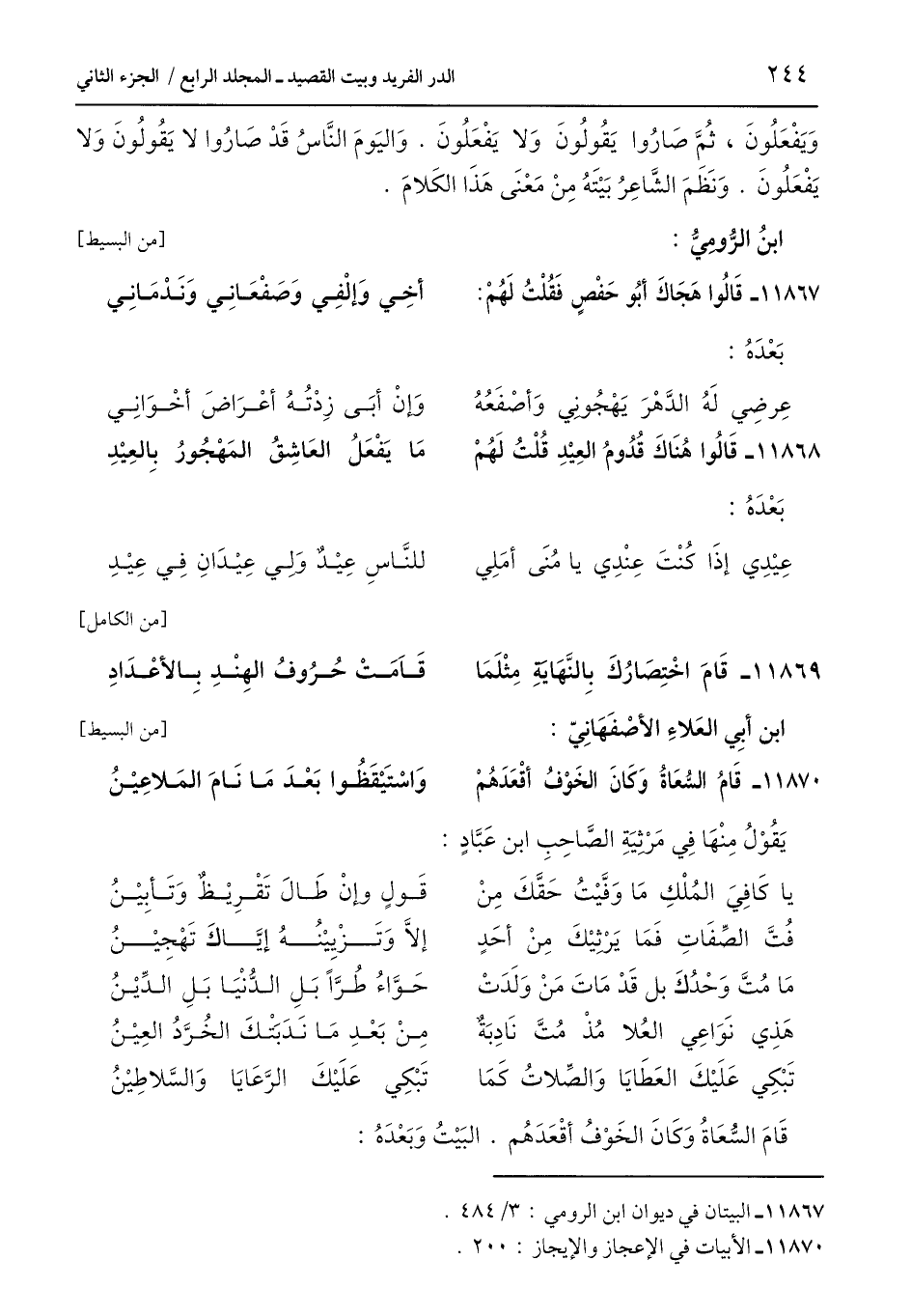 11868 - قَالُوا هُنَاكَ قُدُومُ العِيْدِ قُلْتُ لَهُمْ ... مَا يَفْعَلُ العَاشِقُ المَهْجُورُ بِالعِيْدِ