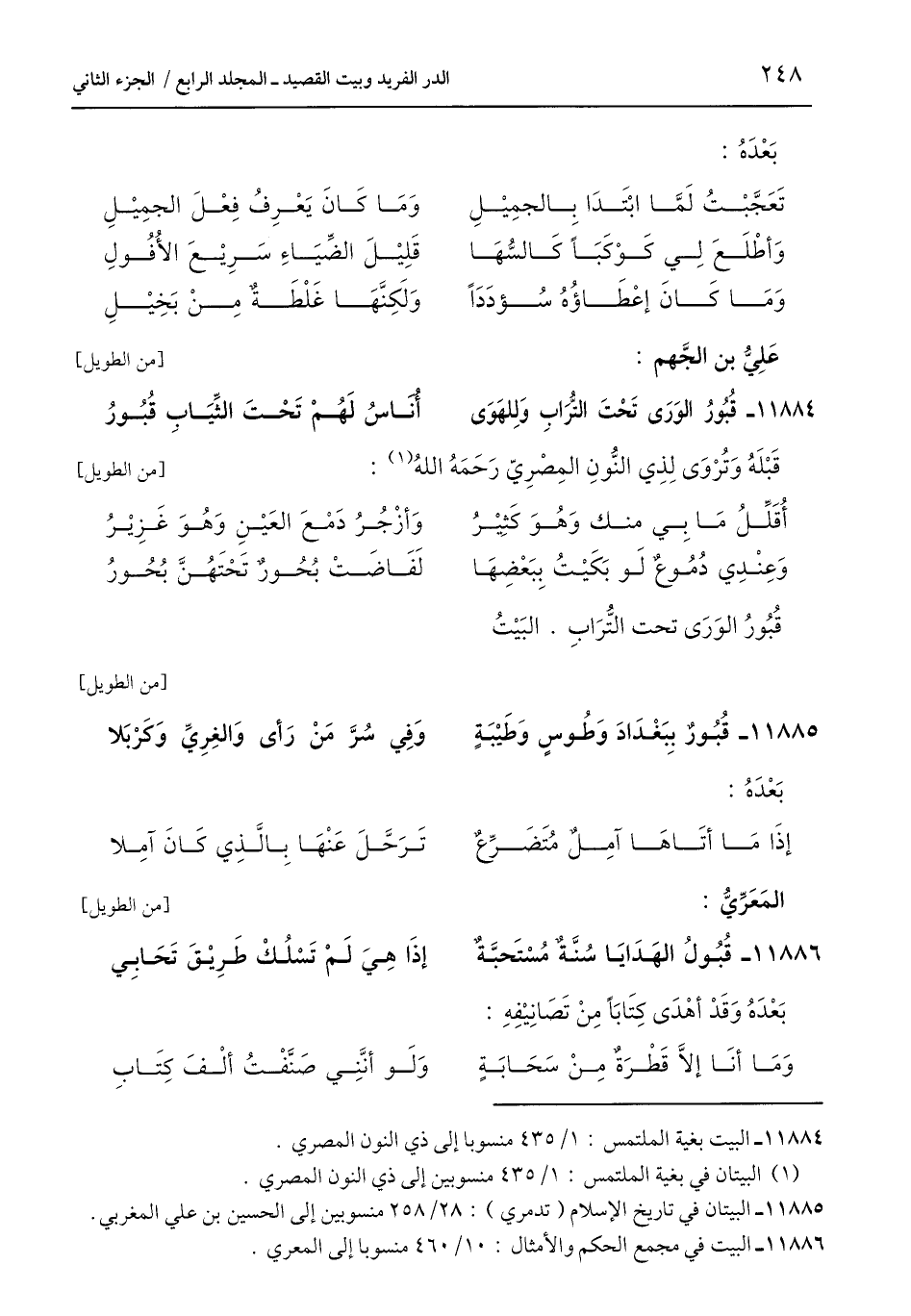 11885 - البيتان في تاريخ الإسلام (تدمري): 28/ 258 منسوبين إلى الحسين بن علي المغربي.