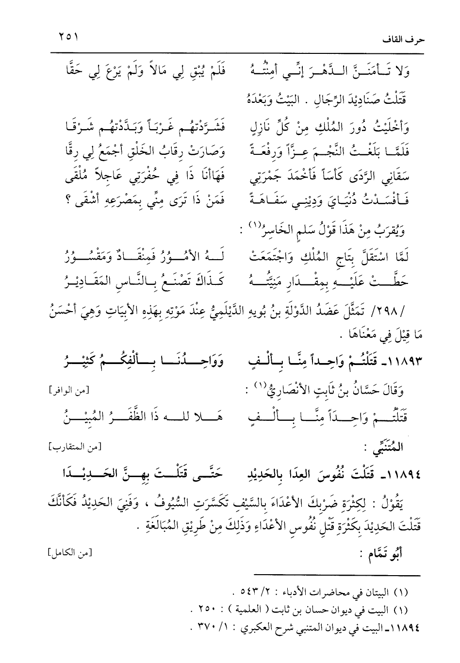 قَتَلْتُ صَنَادِيْدَ الرِّجَالِ. البَيْتُ وَبَعْدَهُ: