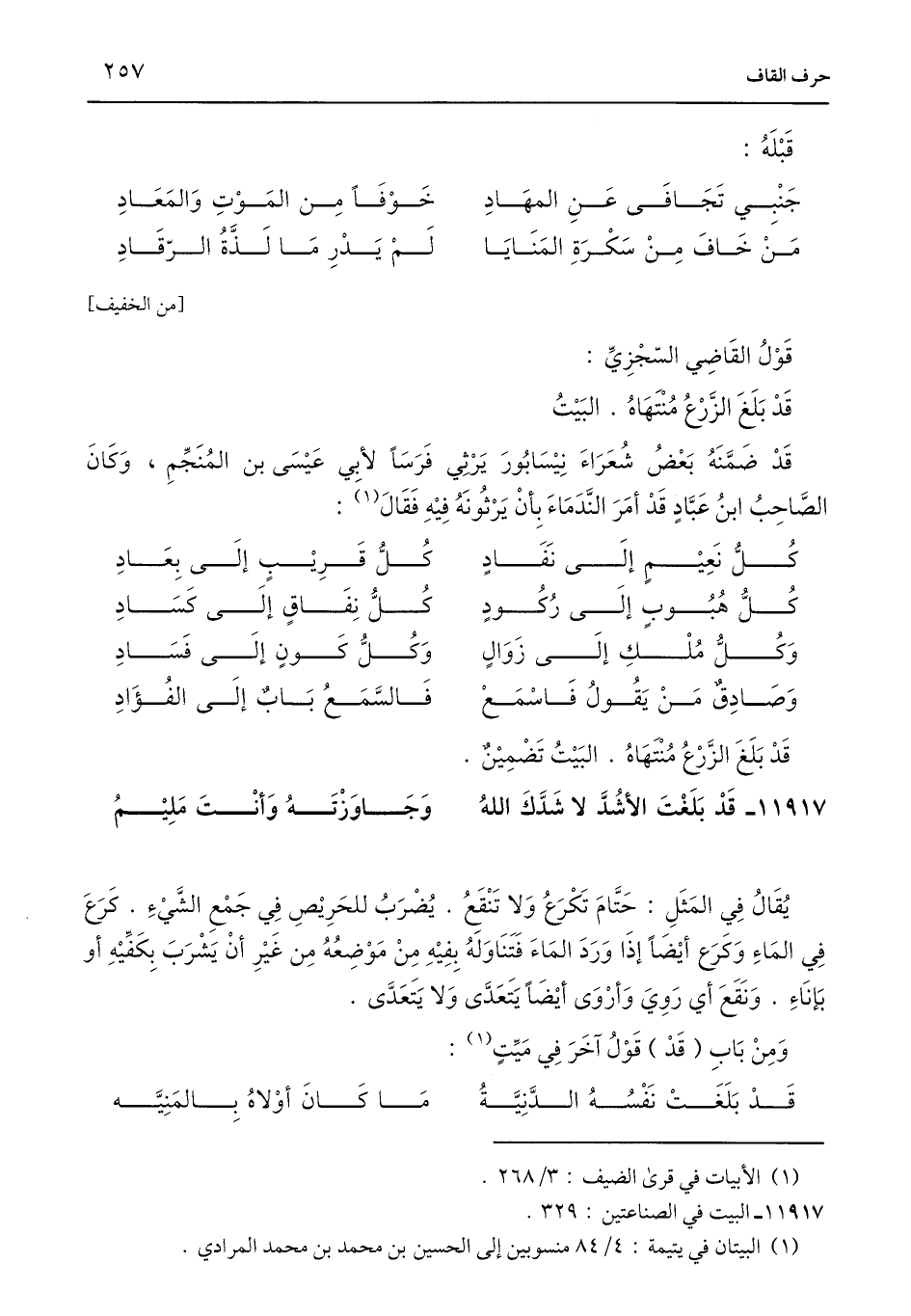 كُلُّ نَعِيْمٍ إِلَى نَفَادٍ ... كُلُّ قَرِيْبٍ إِلَى بِعَادِ