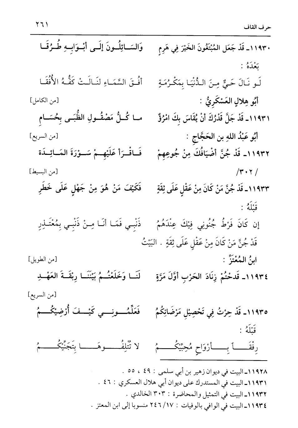 11934 - البيت في الوافي بالوفيات: 17/ 246 منسوبا إلى ابن المعتز.