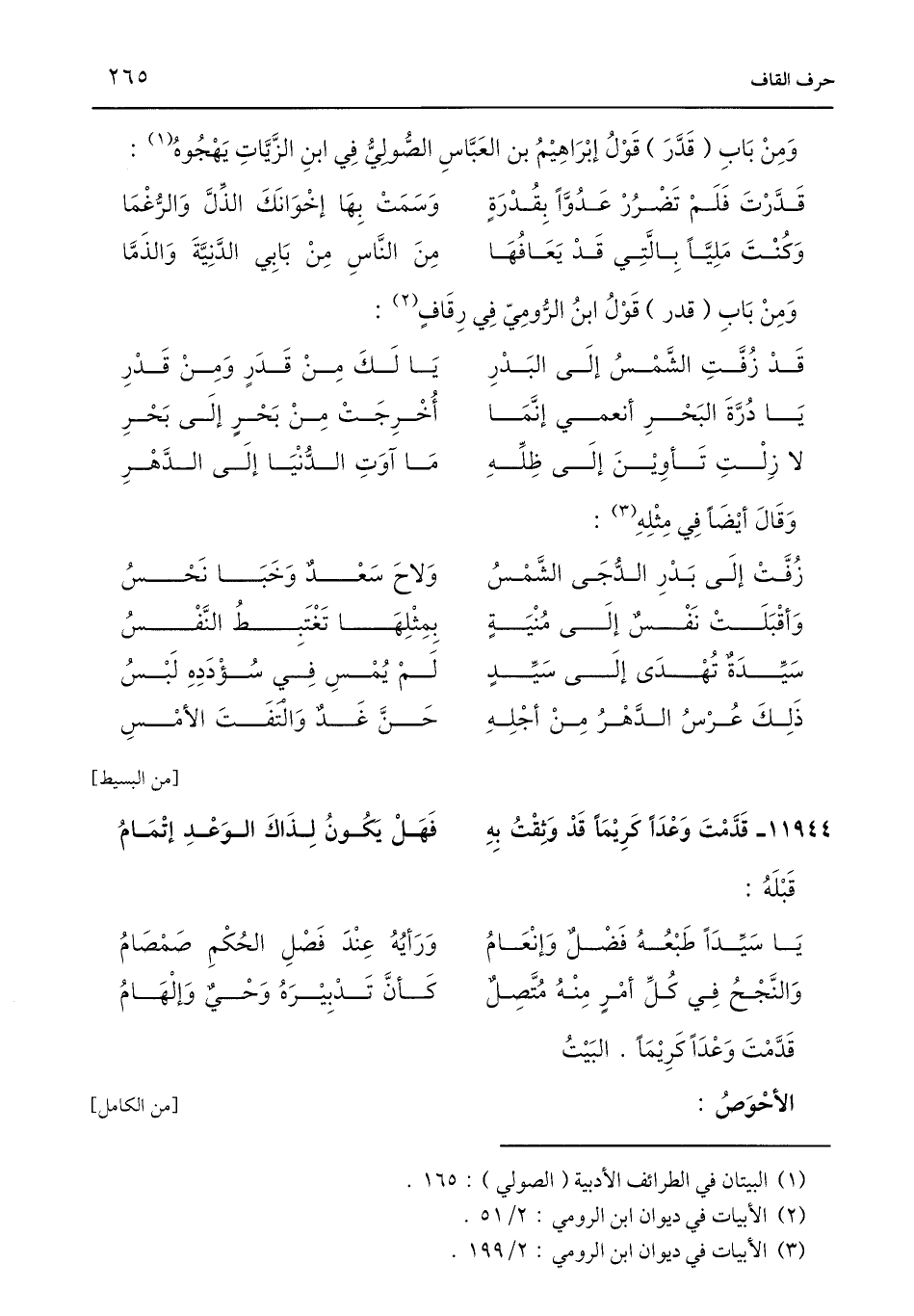 وَمِنْ بَابِ (قدر) قَوْلُ ابْنُ الرُّومِيّ فِي رِقَافٍ (¬2):