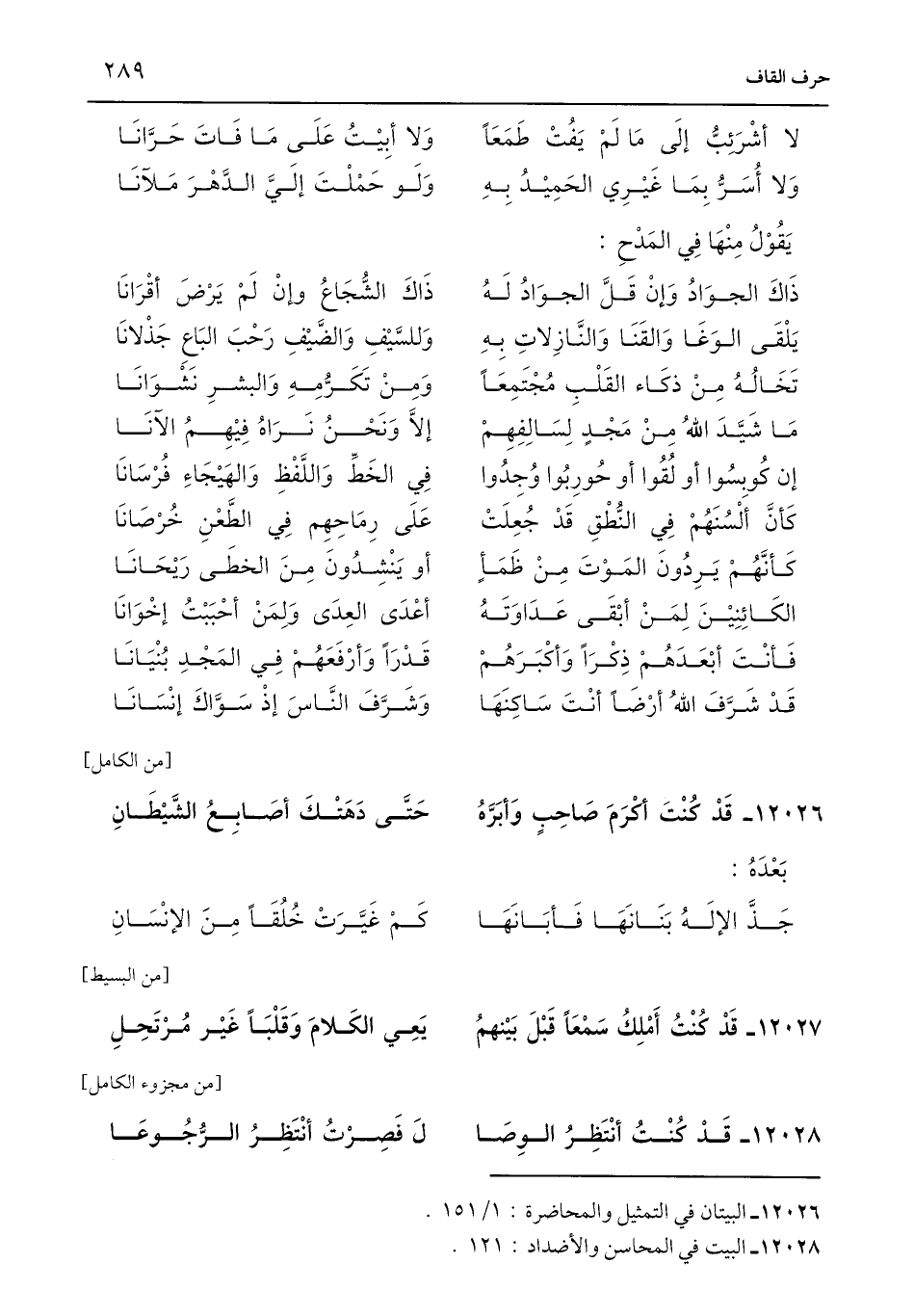 12026 - البيتان في التمثيل والمحاضرة: 1/ 151.