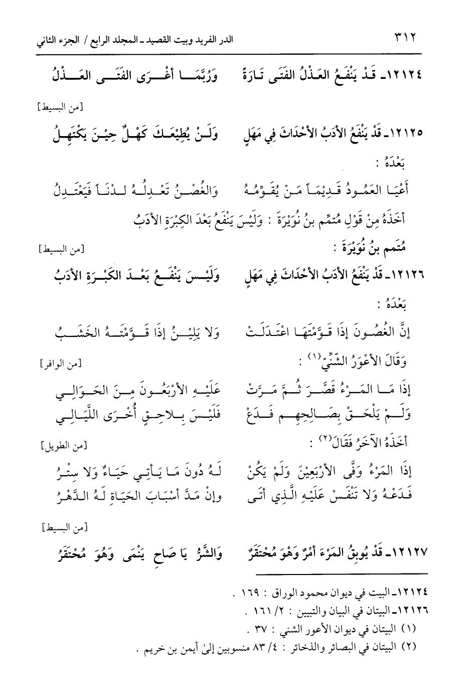 12126 - قَدْ يَنْفَعُ الأدَبُ الأحْدَاثَ فِي مَهَلٍ ... وَلَيْسَ يَنْفَعُ بَعْدَ الكَبْرَةِ الأدَبُ