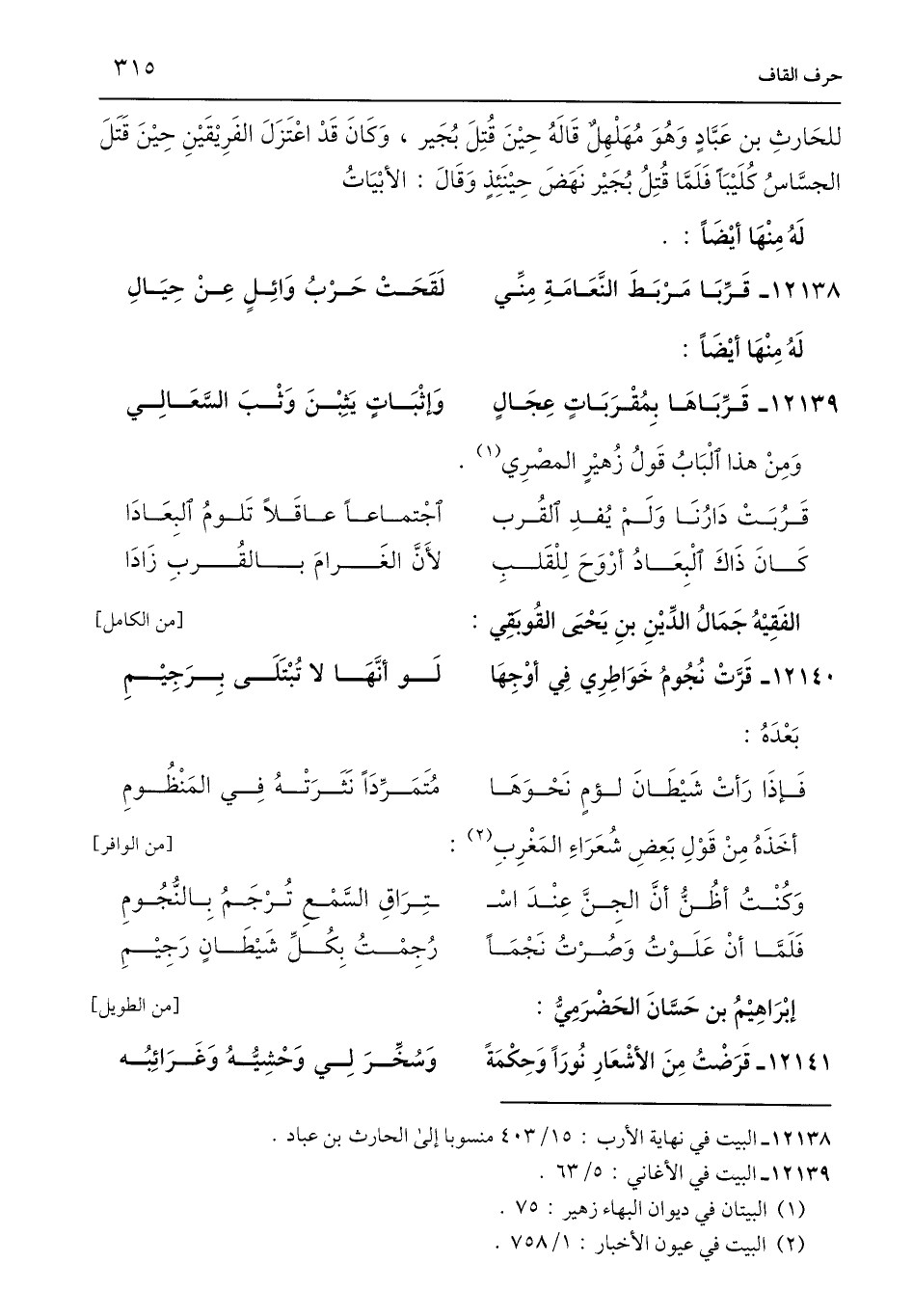 وَمِنْ هذا الْبَابُ قَولُ زُهيْرٍ المصْرِي (¬1):
