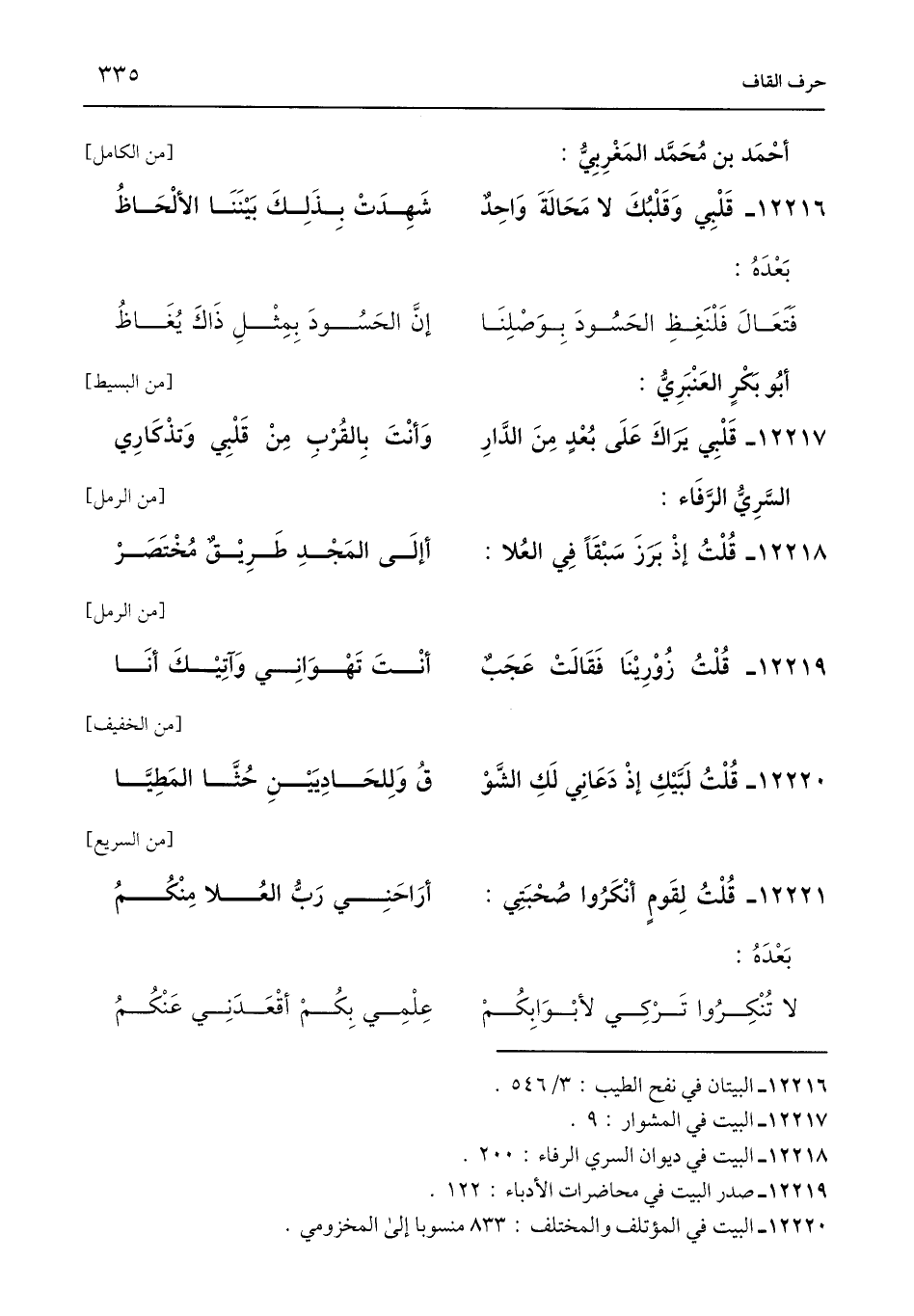 12220 - البيت في المؤتلف والمختلف: 833 منسوبا إلى المخزومي.