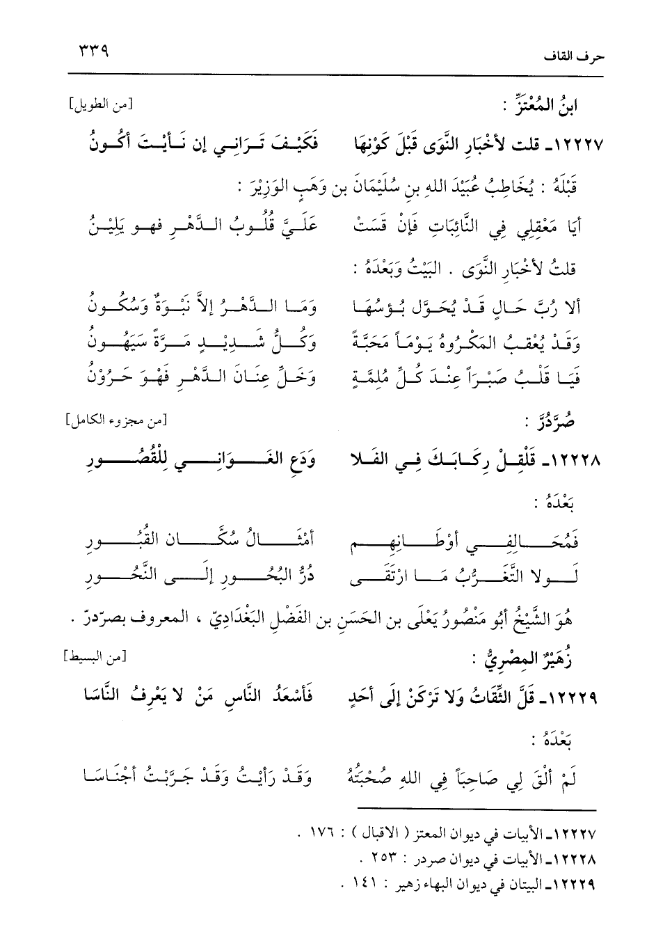 12227 - الأبيات في ديوان المعتز (الاقبال): 176.