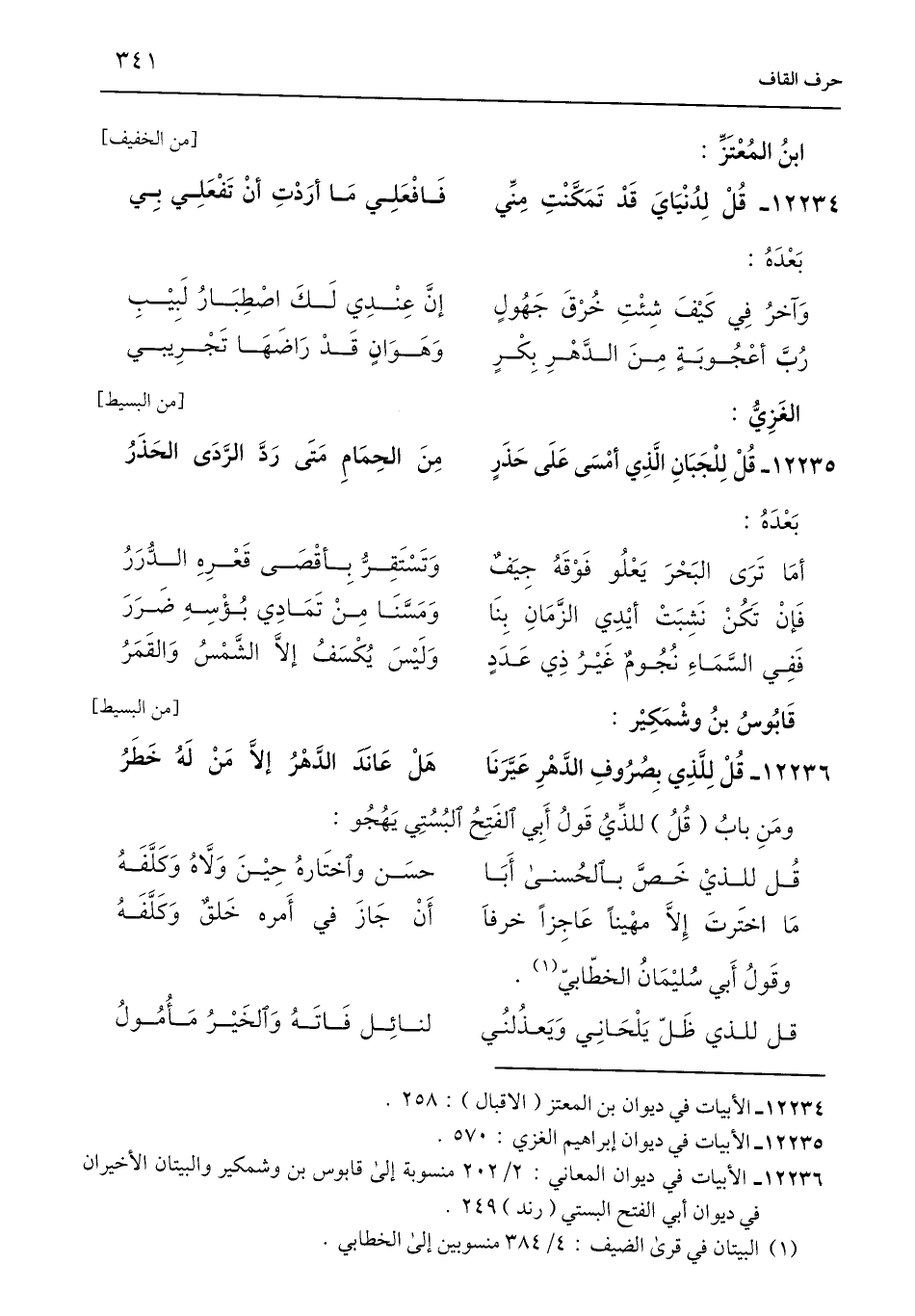 12234 - الأبيات في ديوان بن المعتز (الاقبال): 258.