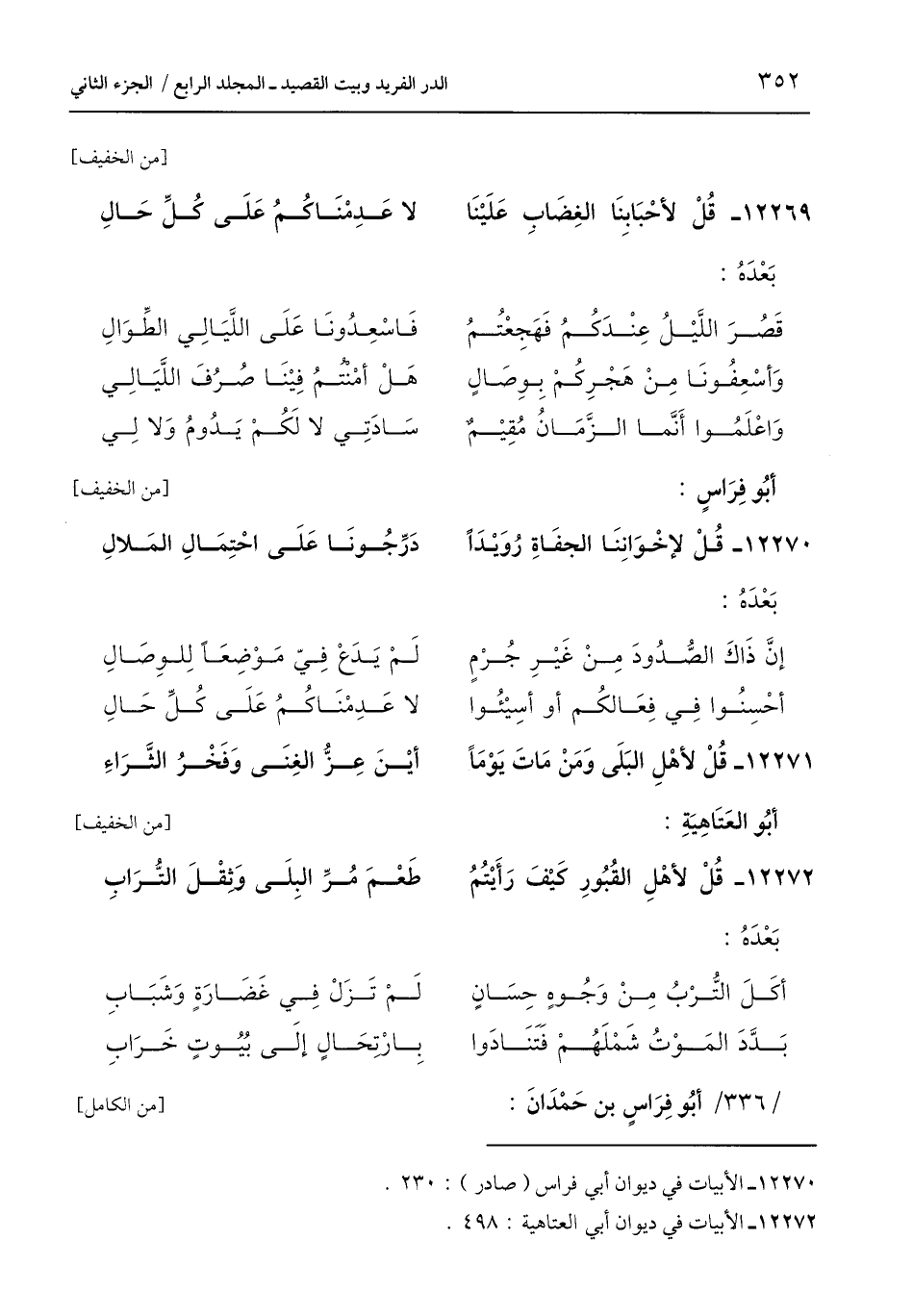 12270 - الأبيات في ديوان أبي فراس (صادر): 230.