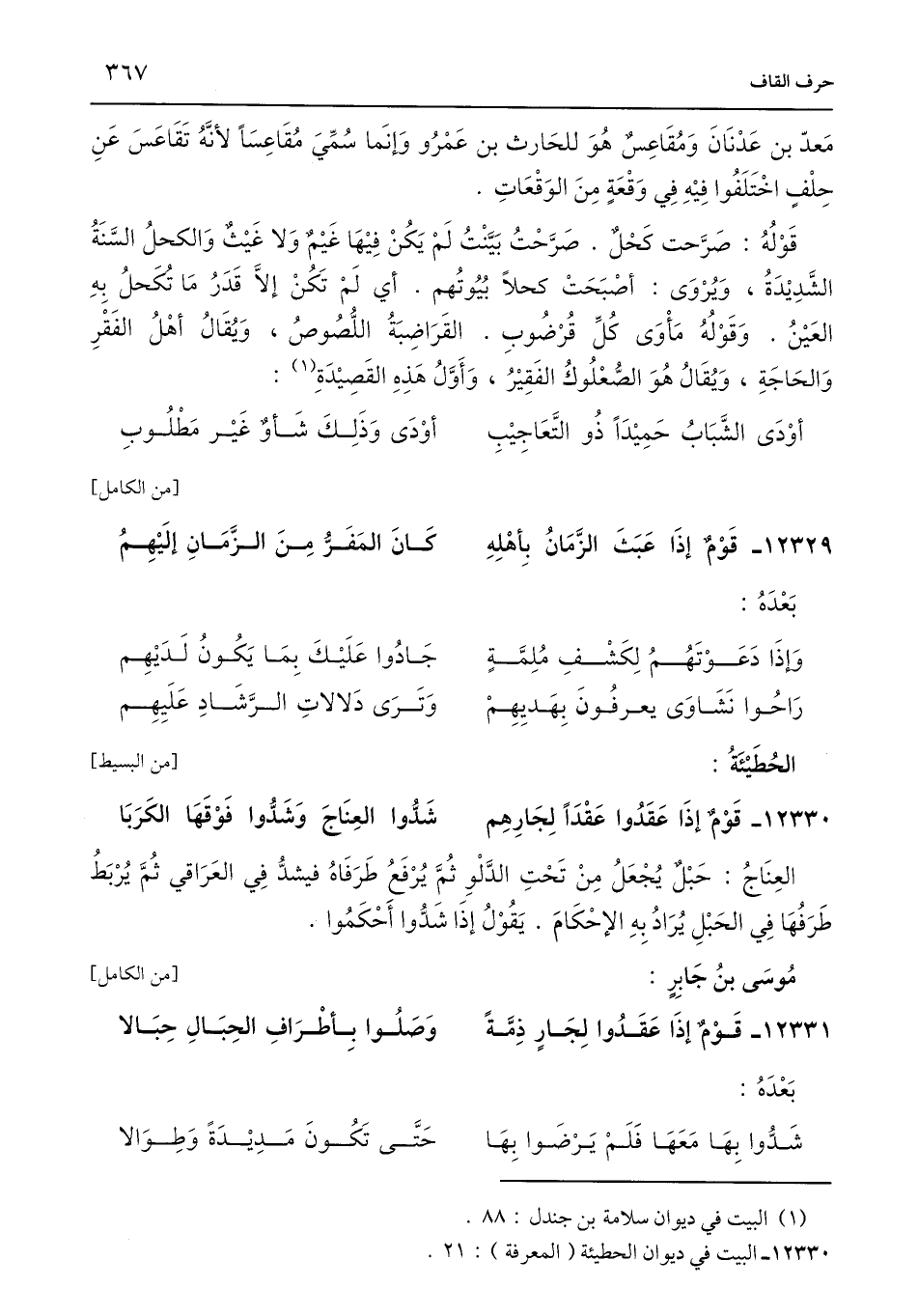 12330 - البيت في ديوان الحطيئة (المعرفة): 21.