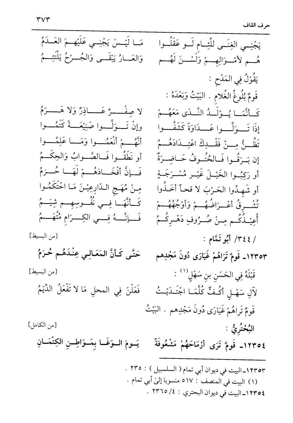 12353 - البيت في ديوان أبي تمام (السلسبيل): 235.