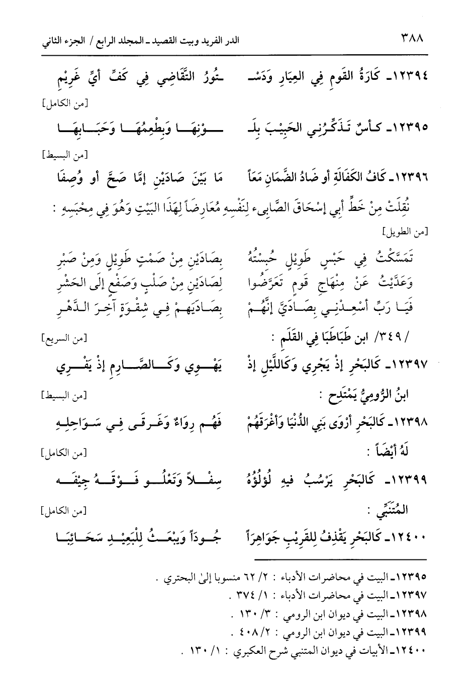 12400 - كَالبَحْرِ يَقْذِفُ لِلقَرِيْبِ جَوَاهِرًا ... جُودًا وَيبْعَثُ لِلْبَعِيْدِ سَحَائِبَا
