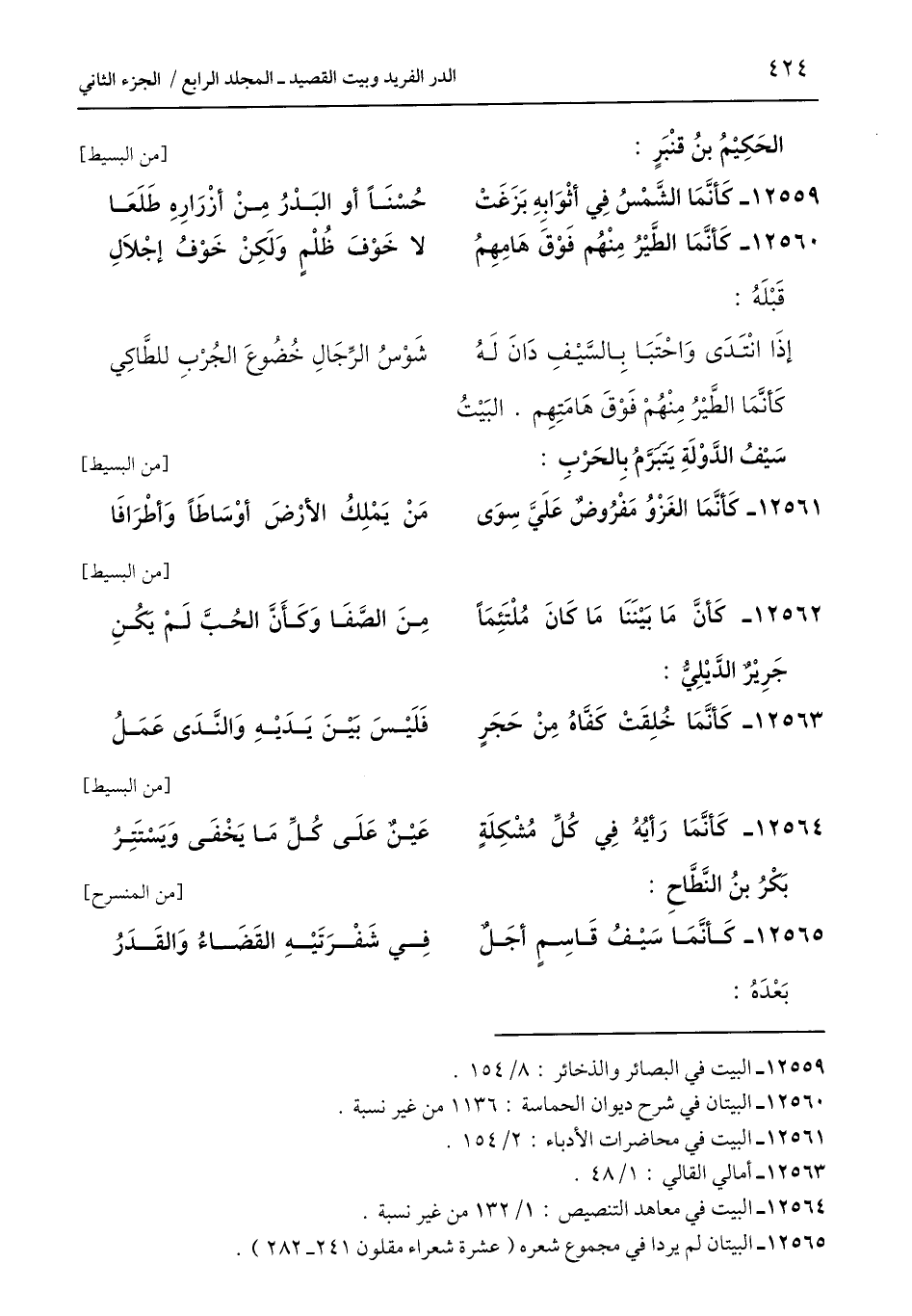 12565 - البيتان لم يردا في مجموع شعره (عشرة شعراء مقلون 241 - 282).