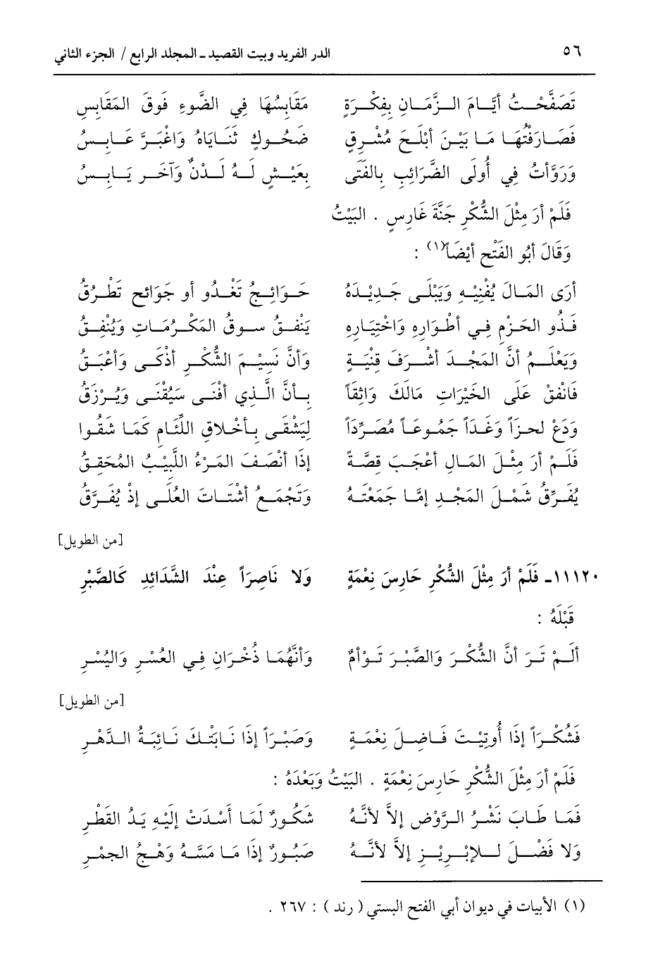 فَلَمْ أرَ مِثْلَ الشُّكْرِ حَارِسَ نِعْمَةٍ. البَيْتُ وَبَعْدَهُ: