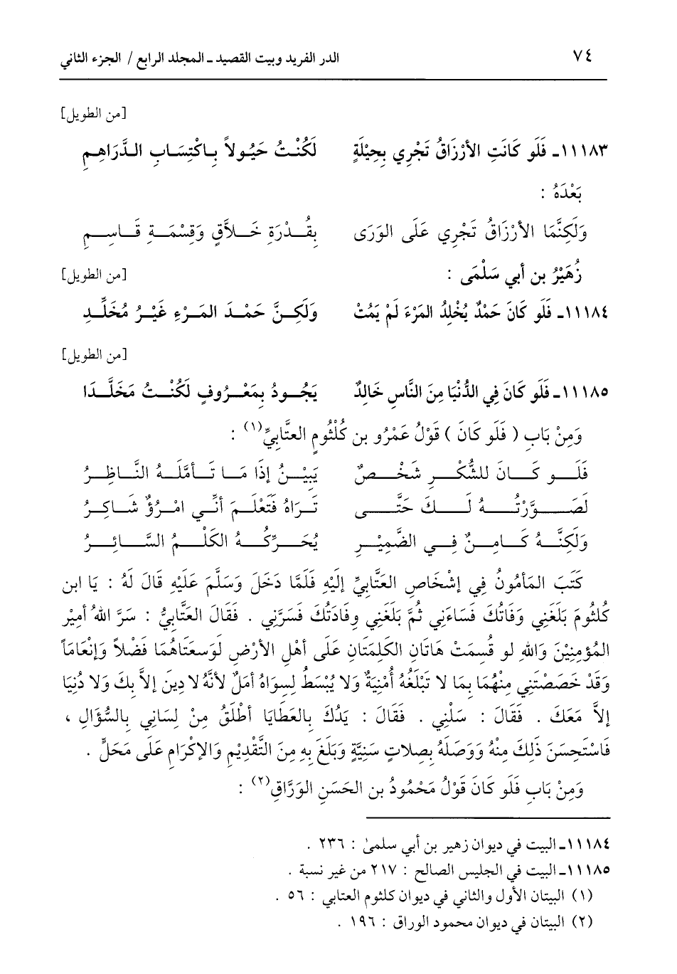 وَمِنْ بَابِ (فَلَو كَانَ) قَوْلُ عَمْرُو بن كُلْثُومٍ العتَّابِيِّ (¬1):