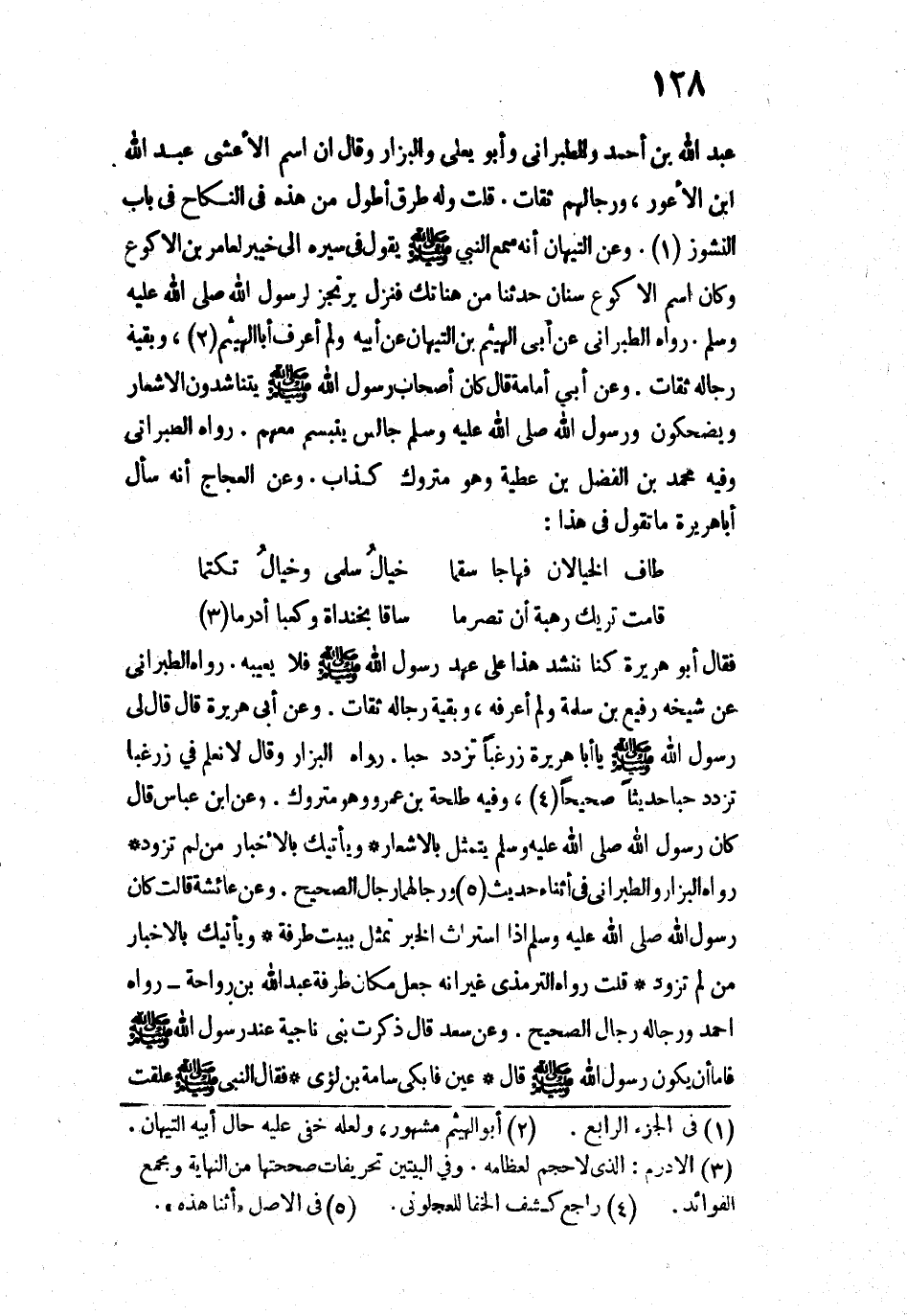 عَبْدُ اللَّهِ بْنُ أَحْمَدَ وَالطَّبَرَانِيُّ وَأَبُو يَعْلَى وَالْبَزَّارُ وَقَالَ: إِنَّ اسْمَ الْأَعْشَى عَبْدُ اللَّهِ بْنُ الْأَعْوَرِ، وَرِجَالُهُمْ ثِقَاتٌ. قُلْتُ: وَلَهُ طُرُقٌ أَطْوَلُ مِنْ هَذِهِ، فِي النِّكَاحِ فِي بَابِ النُّشُوزِ.