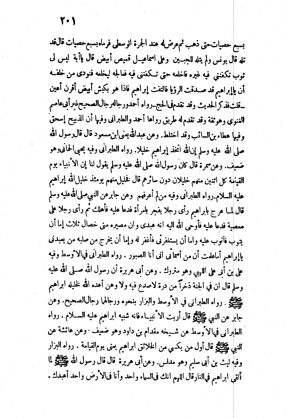 بِسَبْعِ حَصَيَاتٍ حَتَّى ذَهَبَ، ثُمَّ عَرَضَ لَهُ عِنْدَ الْجَمْرَةِ الْوُسْطَى، فَرَمَاهُ بِسَبْعِ حَصَيَاتٍ، قَالَ: قَدْ تَلَّهُ. قَالَ يُونُسُ: وَلَمْ تَلَّهُ لِلْجَبِينِ، وَعَلَى إِسْمَاعِيلَ قَمِيصٌ أَبْيَضُ، قَالَ: أَبَتِ لَيْسَ لِي ثَوْبٌ تُكَفِّنُنِي فِيهِ غَيْرَهُ، فَاخْلَعْهُ حَتَّى تُكَفِّنَنِي فِيهِ، فَعَالَجَهُ لِيَخْلَعَهُ، فَنُودِيَ مِنْ خَلْفِهِ: (أَنْ يَا إِبْرَاهِيمُ قَدْ صَدَّقْتَ الرُّؤْيَا). فَالْتَفَتَ إِبْرَاهِيمُ فَإِذَا هُوَ بِكَبْشٍ أَبْيَضَ أَقْرَنَ أَعْيَنَ» ". قُلْتُ: فَذَكَرَ الْحَدِيثَ وَقَدْ تَقَدَّمَ فِي الْحَجِّ.