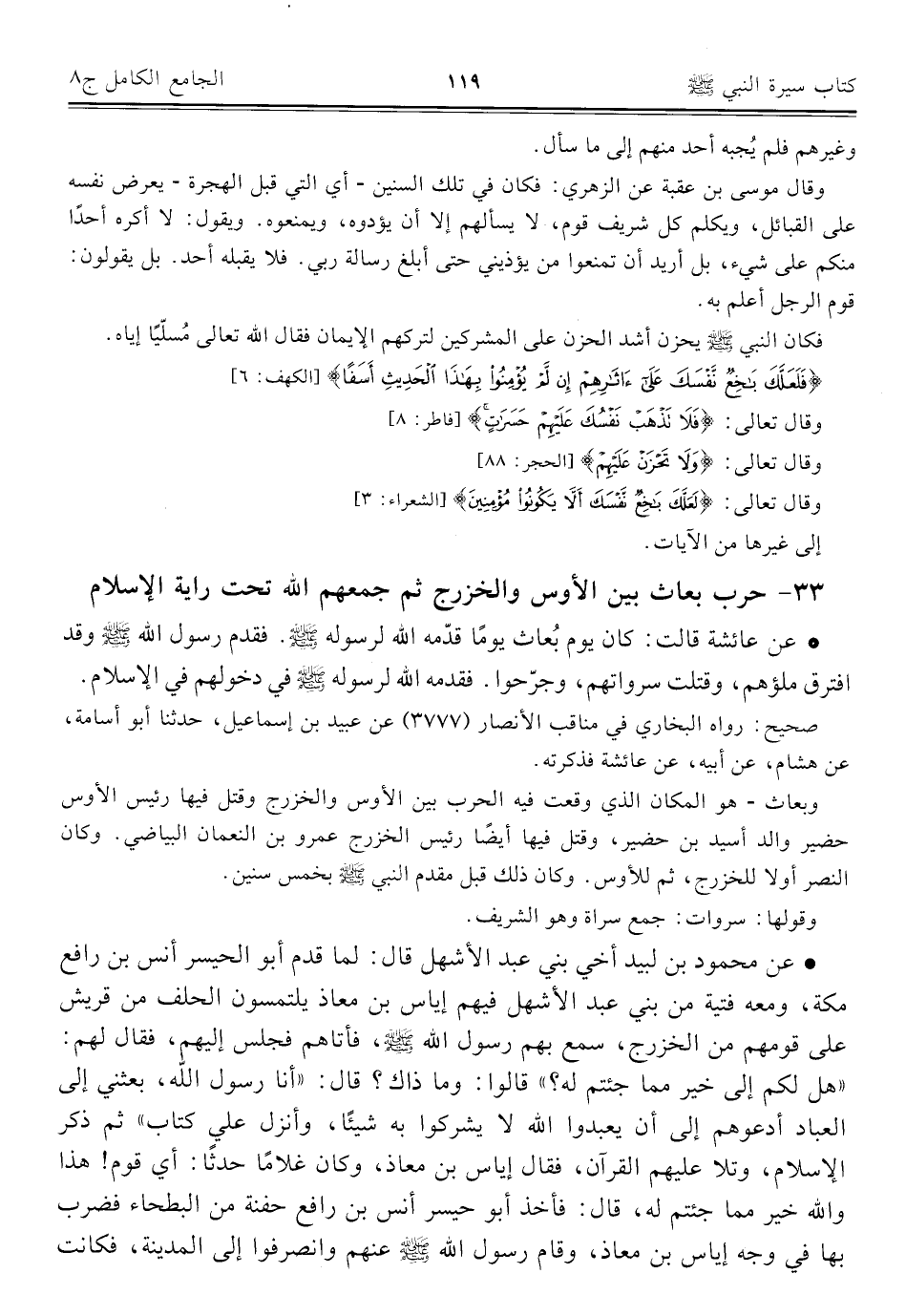 ٣٣ - حرب بعاث بين الأوس والخزرج ثم جمعهم الله تحت راية الإسلام