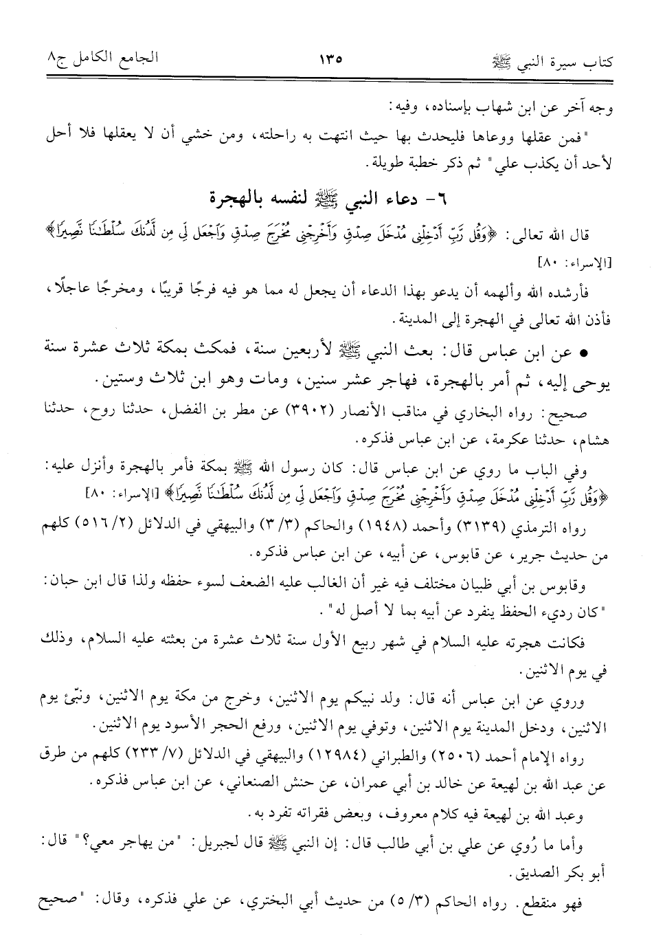 ٦ - دعاء النبي - صلى الله عليه وسلم - لنفسه بالهجرة
