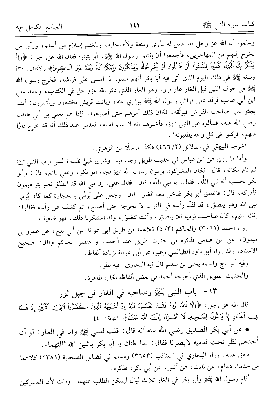 ١٣ - باب النبي - صلى الله عليه وسلم - وصاحبه في الغار في جبل ثور