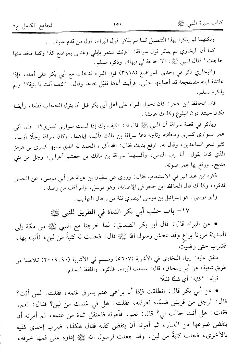 كتاب الجامع الكامل في الحديث الصحيح الشامل المرتب على أبواب الفقه (اسم الجزء: 8)