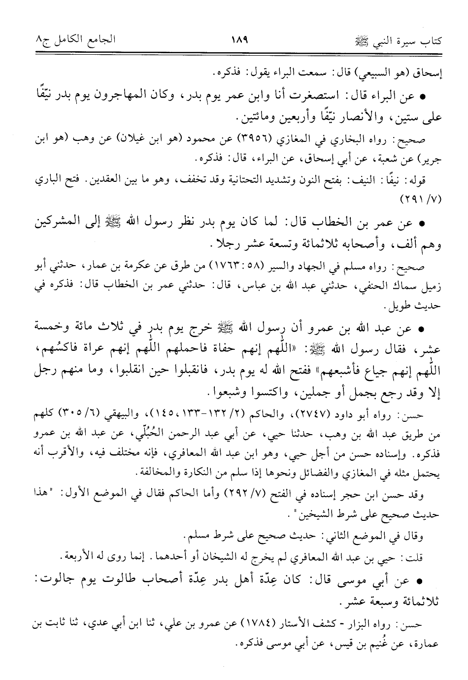 كتاب الجامع الكامل في الحديث الصحيح الشامل المرتب على أبواب الفقه (اسم الجزء: 8)