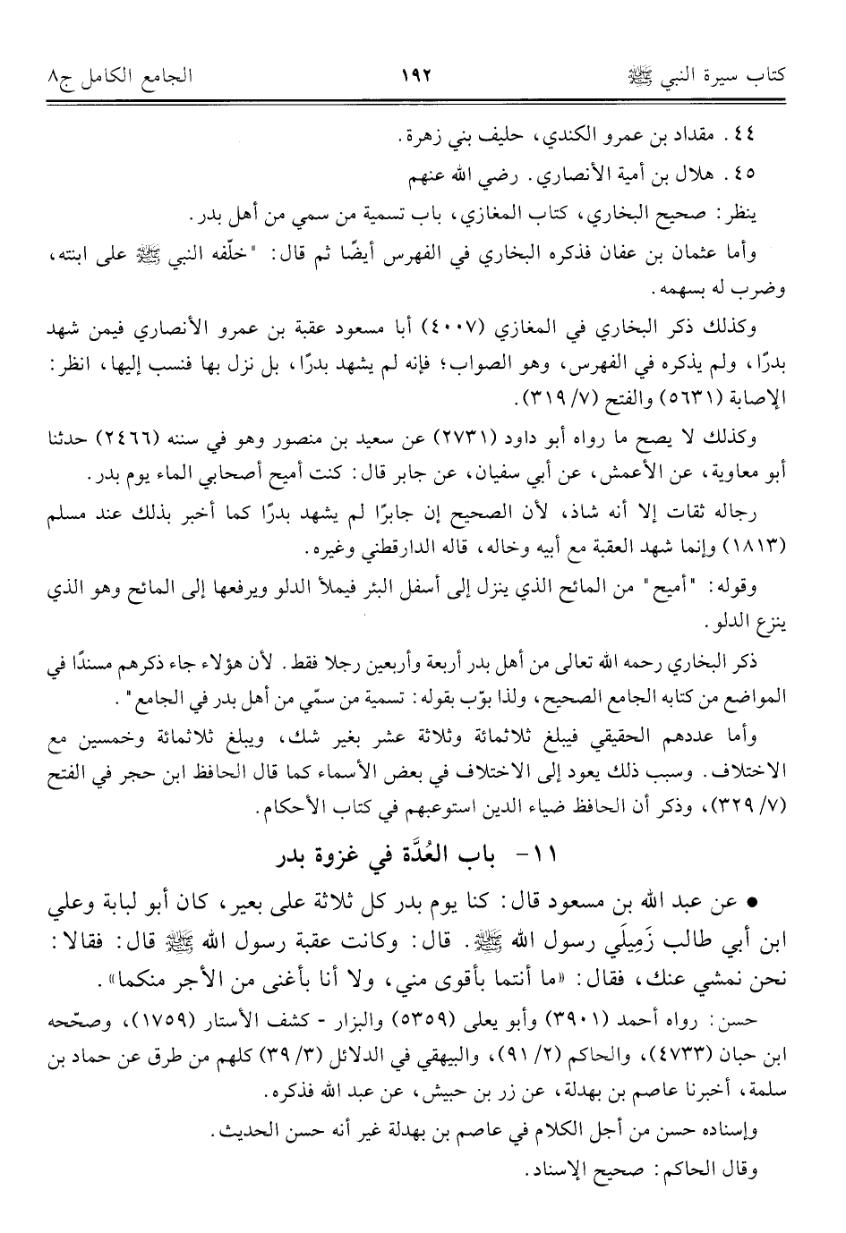 كتاب الجامع الكامل في الحديث الصحيح الشامل المرتب على أبواب الفقه (اسم الجزء: 8)