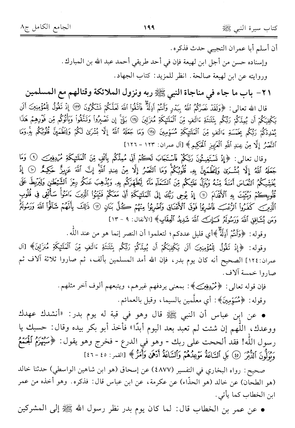 ٢١ - باب ما جاء في مناجاة النَّبِي - صلى الله عليه وسلم - ربه ونزول الملائكة وقتالهم مع المسلمين