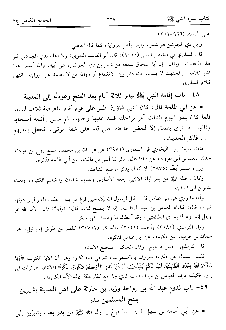 كتاب الجامع الكامل في الحديث الصحيح الشامل المرتب على أبواب الفقه (اسم الجزء: 8)