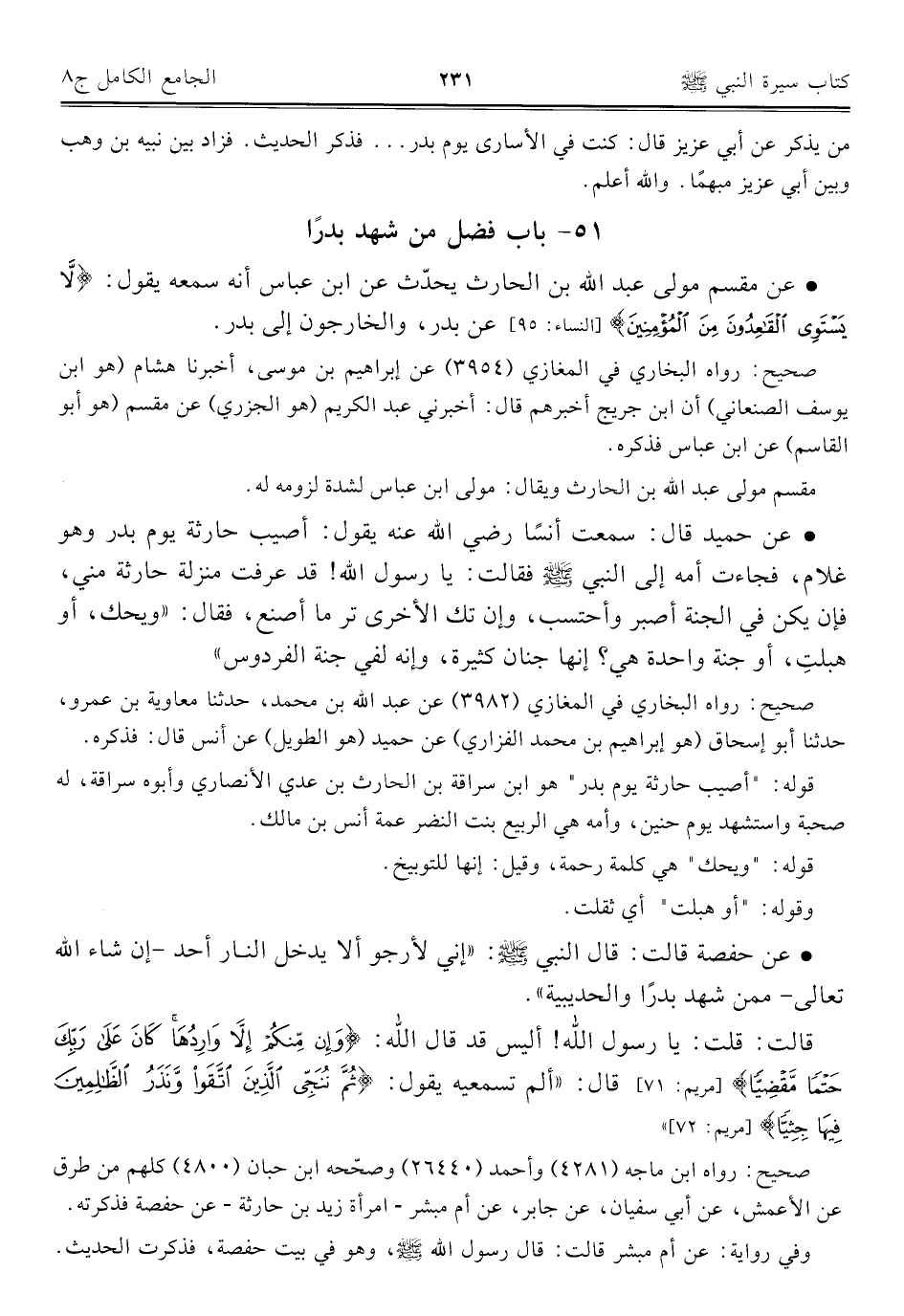 كتاب الجامع الكامل في الحديث الصحيح الشامل المرتب على أبواب الفقه (اسم الجزء: 8)