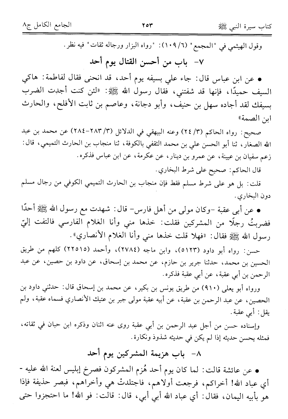 كتاب الجامع الكامل في الحديث الصحيح الشامل المرتب على أبواب الفقه (اسم الجزء: 8)