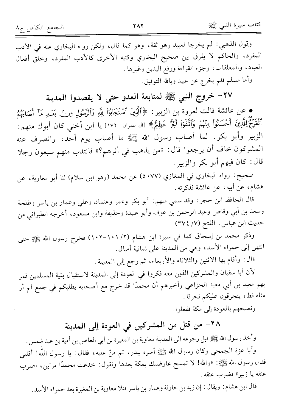 ٢٧ - خروج النبي - صلى الله عليه وسلم - لمتابعة العدو حتى لا يقصدوا المدينة