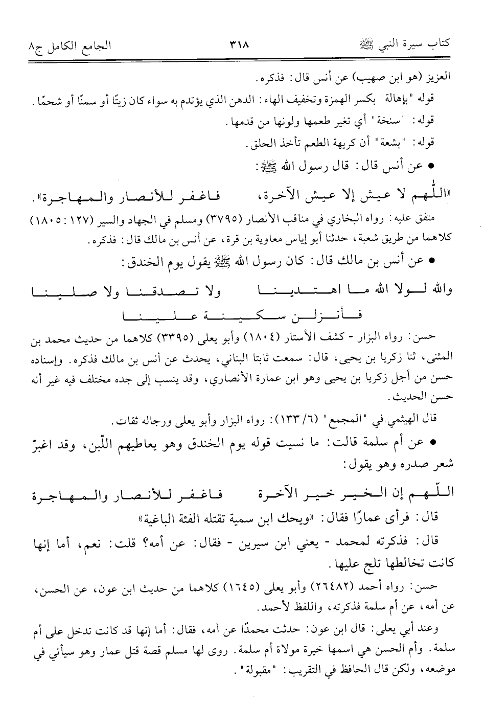• عن أنس بن مالك قال: كان رسول الله - صلى الله عليه وسلم - يقول يوم الخندق: