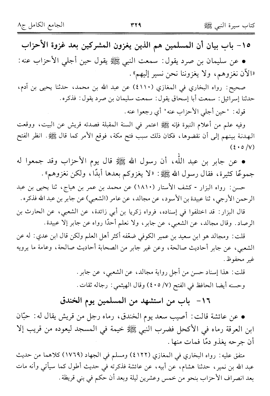 كتاب الجامع الكامل في الحديث الصحيح الشامل المرتب على أبواب الفقه (اسم الجزء: 8)