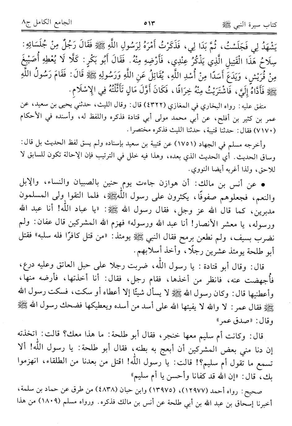 كتاب الجامع الكامل في الحديث الصحيح الشامل المرتب على أبواب الفقه (اسم الجزء: 8)
