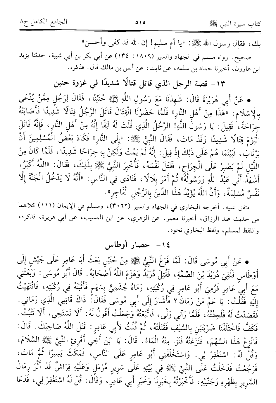 كتاب الجامع الكامل في الحديث الصحيح الشامل المرتب على أبواب الفقه (اسم الجزء: 8)
