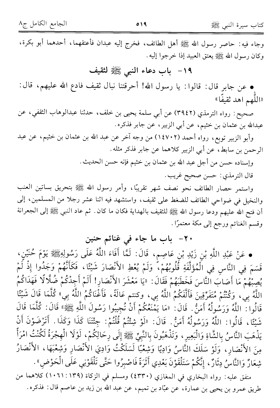 كتاب الجامع الكامل في الحديث الصحيح الشامل المرتب على أبواب الفقه (اسم الجزء: 8)