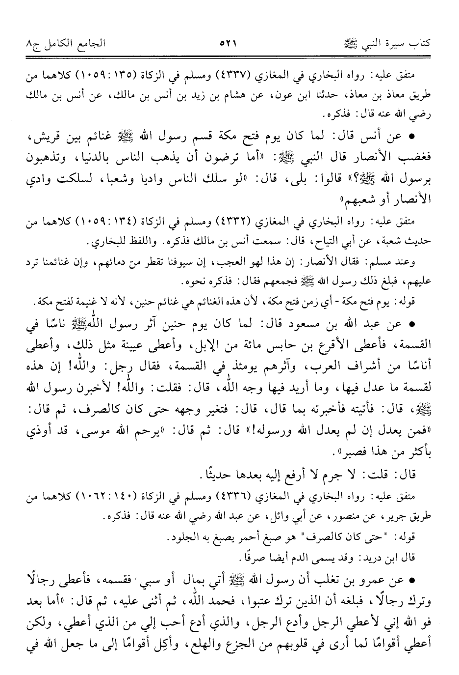 متفق عليه: رواه البخاري في المغازي (٤٣٣٦) ومسلم في الزكاة (١٤٠: ١٠٦٢) كلاهما من طريق جرير، عن منصور، عن أبي وائل، عن عبد الله - رضي الله عنه - قال: فذكره.