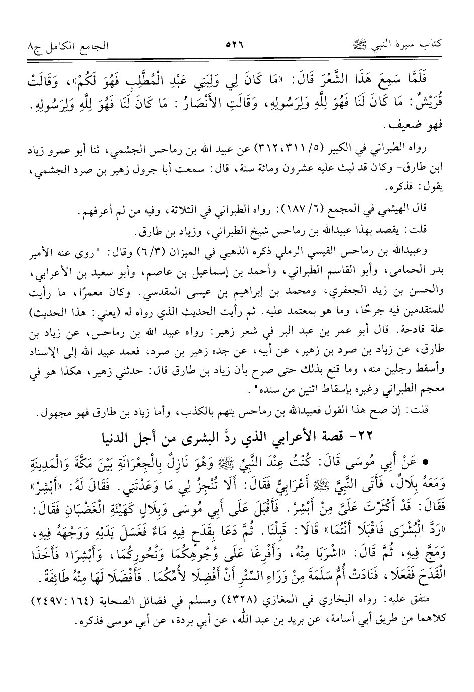 كتاب الجامع الكامل في الحديث الصحيح الشامل المرتب على أبواب الفقه (اسم الجزء: 8)